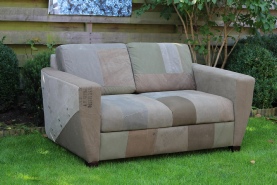 © ERJO Design Stoffeerderij Meubel- Auto- Caravanbekleding Roosendaal | erjo-design.com Milieuvriendelijke bezorging!!  Reparatie bank J.T.C Roosendaal. Oud   =>   Nieuw Bankje gestoffeerd met originele legertenten gave tuinbanken gestoffeerd